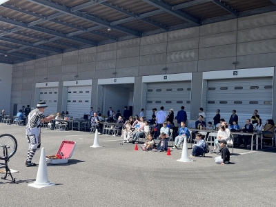 先日、2020年に新築した北名古屋支店にて内覧会&懇親会を開催しました。完成当時はコロナ禍で開催できませんでしたが、当日は従業員の家族も招待して、社内を見て回ったり、大道芸、射的、食品サンプル作りを楽しんだり、キッチンカーの美味しい物を食べたりして楽しく過ごしました。